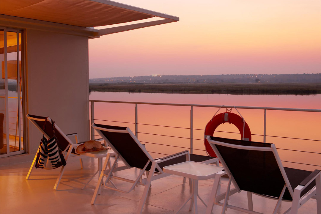 Picture yourself smoothly gliding along the celebrated Chobe River, getting up close and personal with giraffes, rhinoceroses, zebras, leopards and other amazing safari wildlife and taking scenic drives and tours through stunning African towns, villages and national parks, truly immersing yourself in African culture. You can easily turn this vision into a reality on an amazing Zambezi Queen cruise. Launched in 2009 and renovated in 2019, this extremely intimate 28-passenger ship provides an incredible and unforgettable experience with comfortable accommodations, friendly public spaces and fine authentic cuisine. With a crew-to-guest ratio of nearly 1:1, you can expect flawless, personalized service as you drift through the African river valley.