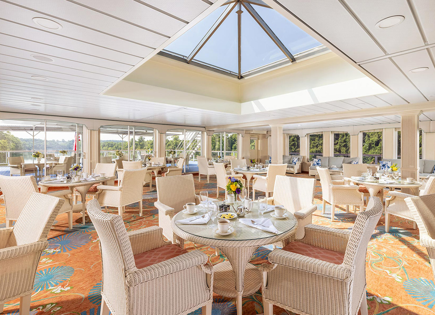 Complimentary room services are available in every stateroom during select mealtimes, and all accommodations have a private balcony with picture-perfect panoramic views.