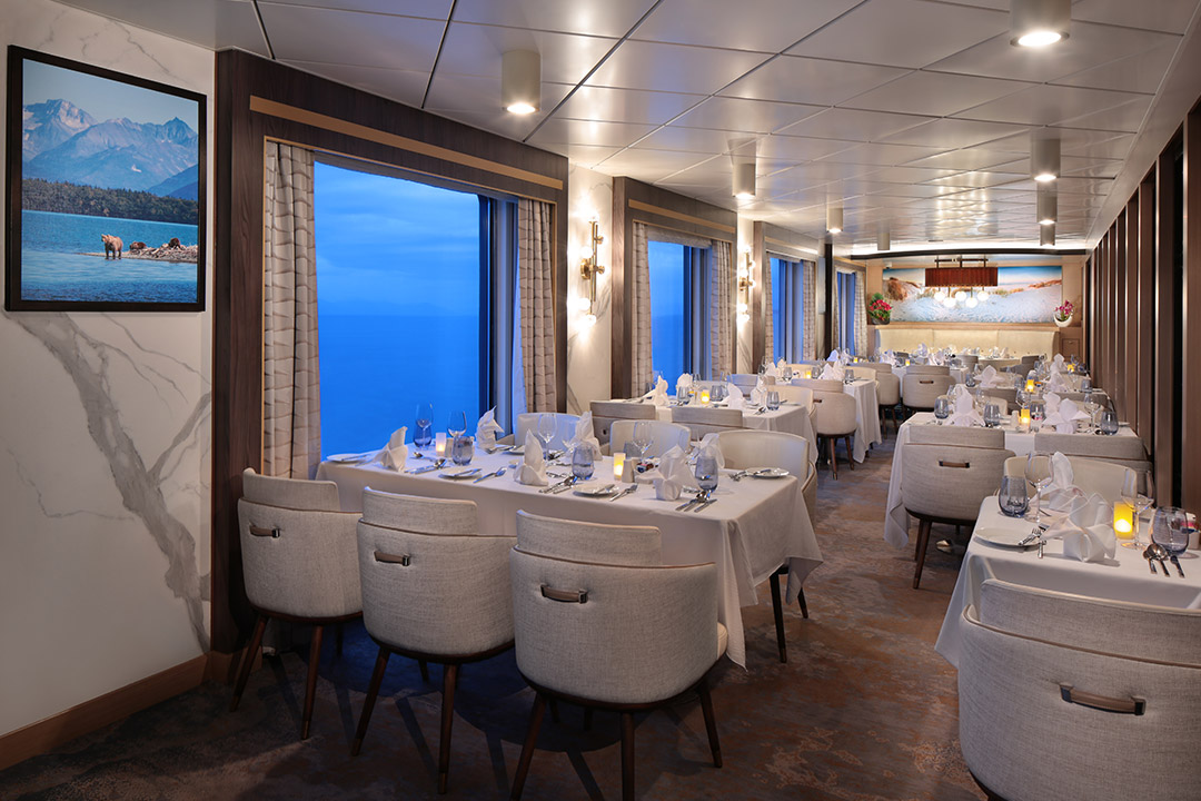 The 342-foot-long vessel with 100 crew members welcomes up to 186 guests aboard to explore North Pacific and Alaska in the spring, summer, and fall of 2023 and 2024. The cruise ship starts her journey from the Ports of San Diego (California), San Jose (Costa Rica), Sitka (Alaska), and Vancouver (British Columbia).