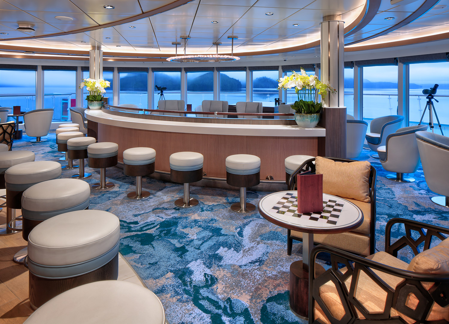The relaxing atmosphere, beautiful design, breathtaking outside views, and comfortable furnishings make all 93 accommodations a lovely place to stay while sailing and exploring the world.
