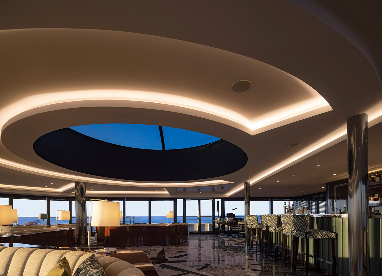 Whether you explore the Arctic, Antarctica, Norwegian fjords, Mediterranean, Northern Europe, Greenland, Iceland, or other gorgeous destinations aboard World Navigator, this ship allows you to get closer to the environment and wildlife without disturbing their habitat. While built for comfort and luxury in all conditions, the cruise yacht has an innovative hydro-jet propulsion system that maximizes fuel efficiency and reduces environmental impact. A hybrid power management and propulsion system allow World Navigator to use just one-fifth of the fuel compared to a conventional cruise ship without sacrificing speed with another system limiting noise.