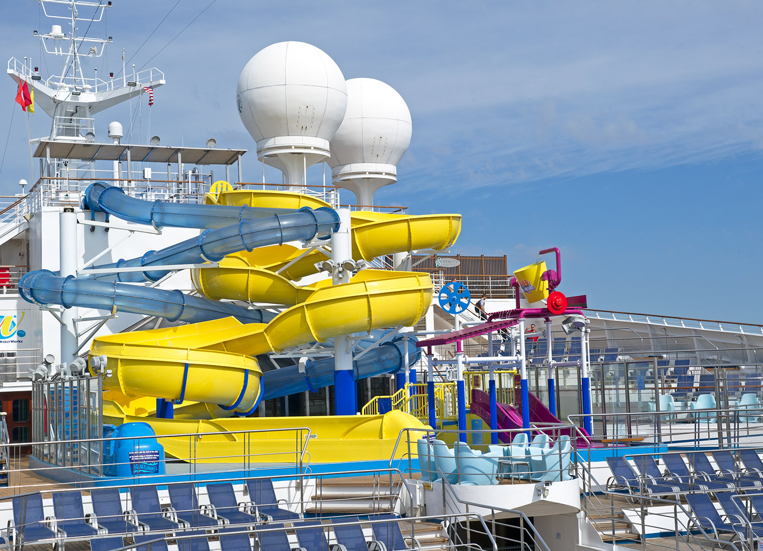 As soon as you see this large waterpark, you’ll find yourself changing into your bathing suit faster than ever! Located on Deck 10, Carnival WaterWorks is a brand-new addition to Carnival Glory and features the AquaTunnel, a giant enclosed tube slide, the Power Drencher, a humongous 75-gallon bucket ready to soak you silly, and of course the signature Twister Waterslide, a three-deck-high waterslide with daring twists and turns that will have you screaming all the way to the bottom. There’s also a splash and spray park and mini racer slides for the little ones who may not be up to or old enough for the bigger attractions.