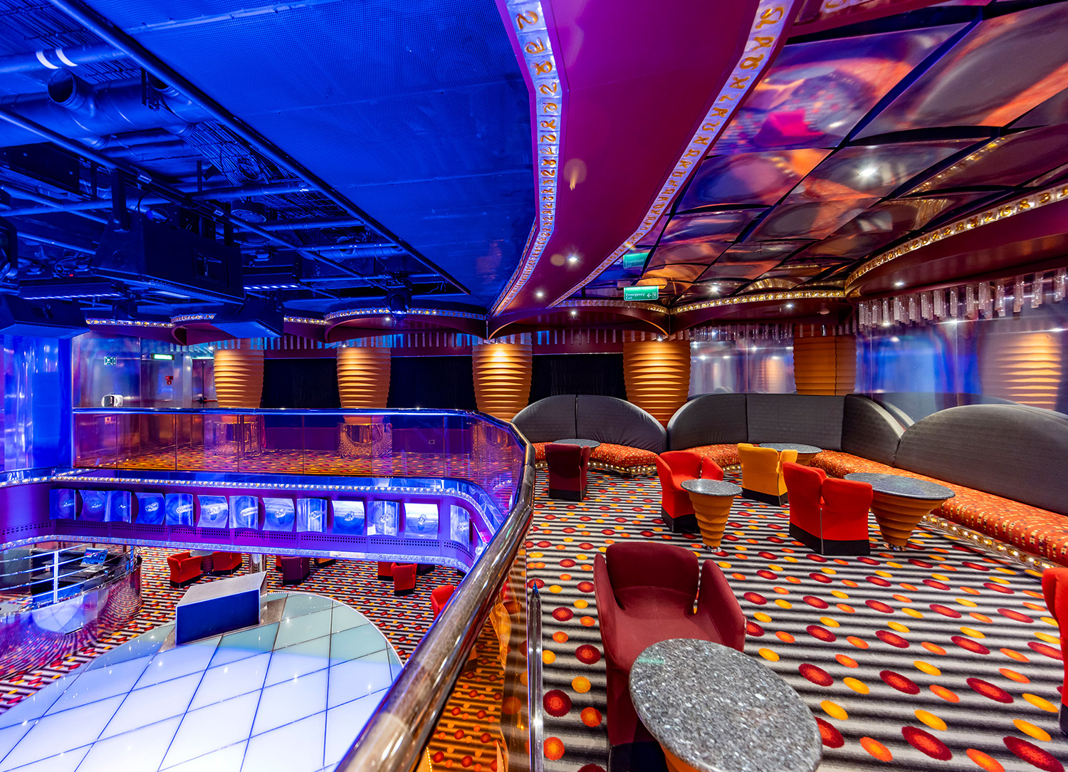 Altair Nightclub is a two-deck nightclub offering the hottest hits and retro jams from Carnival Luminosa DJs and beverage services. It is open till late. Guests must be 18 years and older.