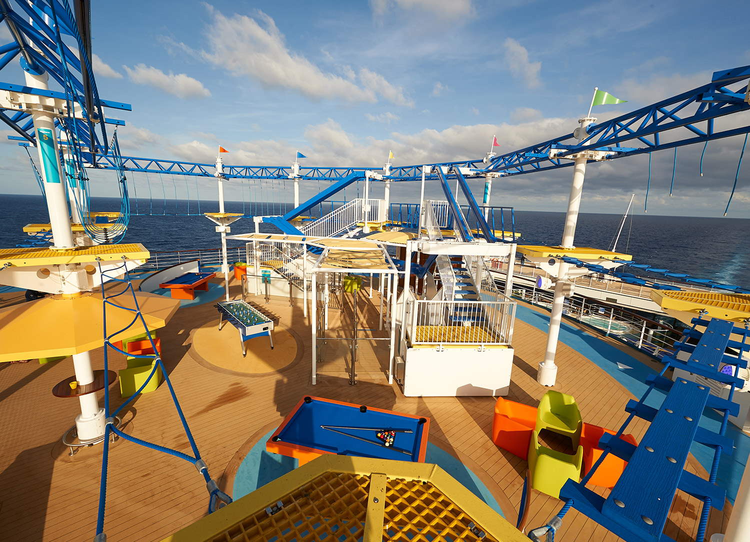 If you love waterparks, then you’re going to love Carnival Sunrise cruise, which has its very own! Among the excitement of screaming and splashing, you can ride down the daring 212’-long spiraling open Twister Waterslide or 203'-long enclosed AquaTunnel slide, get soaked underneath the 150-gallon Power Drencher tipping bucket, race amidst kids at the Mini Racer slide, or enjoy the splash area. It’s a great part of the ship to spend unforgettable time with friends and family.