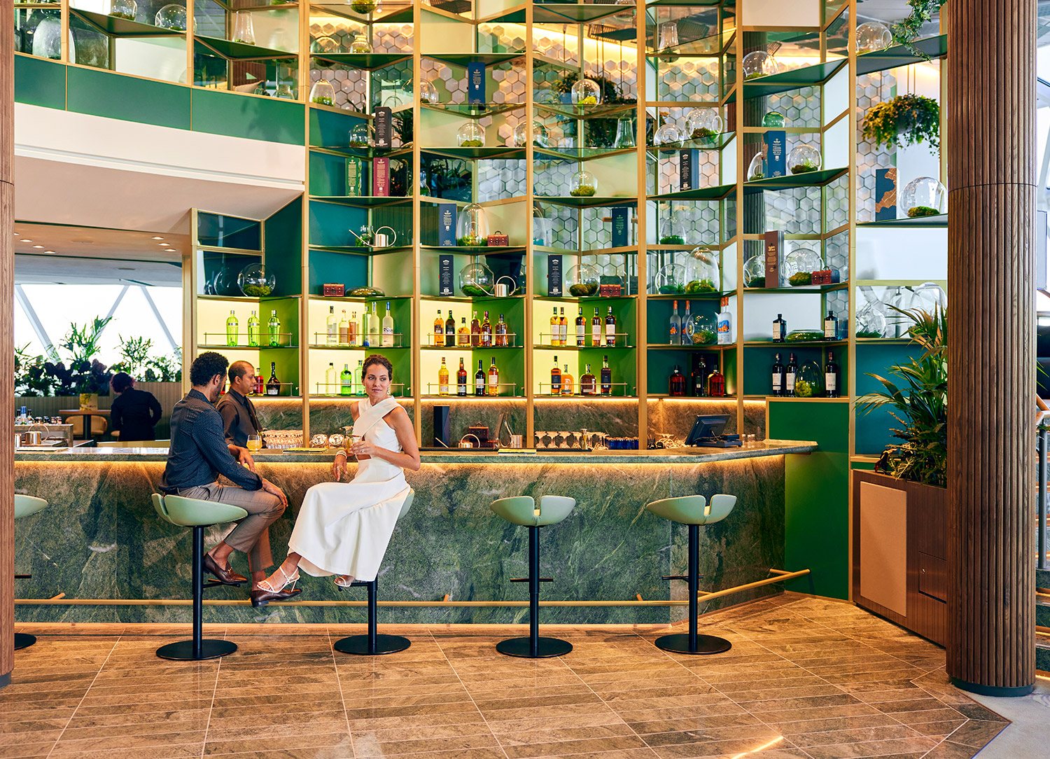 You have so many places to explore right on the cruise ship. The Grand Plaza offers various experiences whenever you visit. Warm and inviting lighting during the day changes to dramatic at night. The Celebrity Beyond's Resort Deck is an experience unlike any other, with the Rooftop Garden, adult-only Solarium pool, and lots of comfortable seating to lounge in the sun. The Magic Carpet is a floating platform that moves 13 stories above sea level, providing one of the best views of the ocean, all while enjoying a full bar, live music, and comfortable seating.