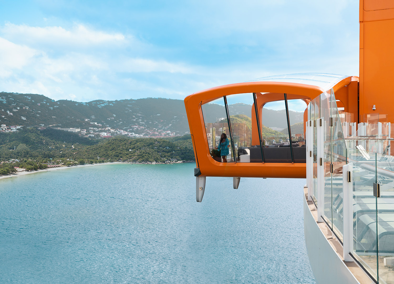 The Magic Carpet, located at the very top of the Celebrity Beyond, is a gorgeous venue high in the sky where travelers can attend amazing experiences such as music performances and Dinner on the Edge. This spectacular platform can transform numerous spaces into some of the hottest venues. The Magic Carpet can extend venues, create al fresco dining experiences, and easily accommodate guests who are limited in mobility by seamlessly moving up and down decks. The platform, which can hold up to 100 guests at one time, has seating, full bar service, and a stage for live performances.