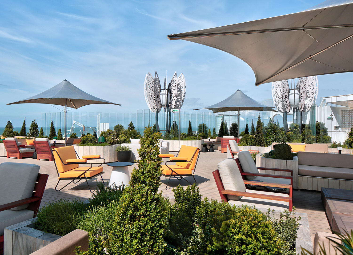 Rooftop Garden is one of the best locations aboard Celebrity Beyond for a breathtaking ocean view. The Rooftop Garden offers guests a great place to lounge in comfortable seats and enjoy delicious barbecues, live music performances, and movies.