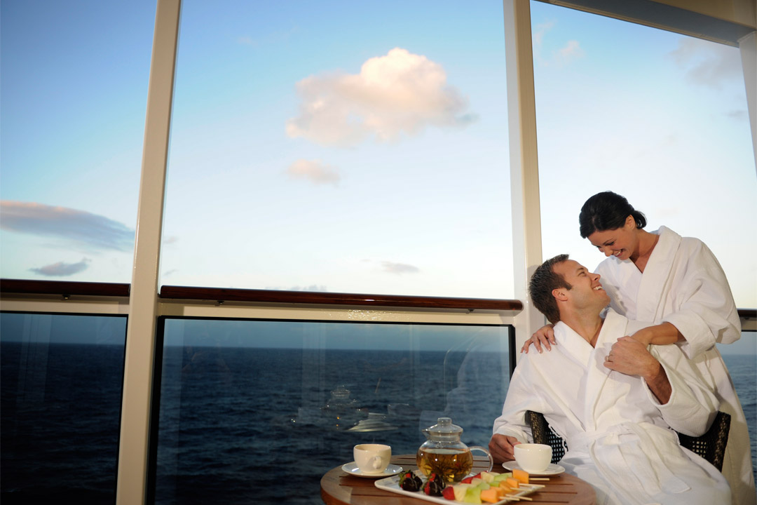 One of the spa’s greatest features for couples is private Spa Villas that you can reserve to relax in while benefiting from a handful of serene amenities, such as a personal whirlpool, a foot cleansing ceremony, and a bathing ritual. The spa also has a rainforest-themed aromatherapy steam room and a sauna based on a Roman bath. This is an adults-only venue, typically open from 8:00 am to 8:00 pm on days at sea. The Chill Spa is open to guests ages 13 to 17, featuring a limited spa menu and special offers such as mother/daughter and father/son massages.