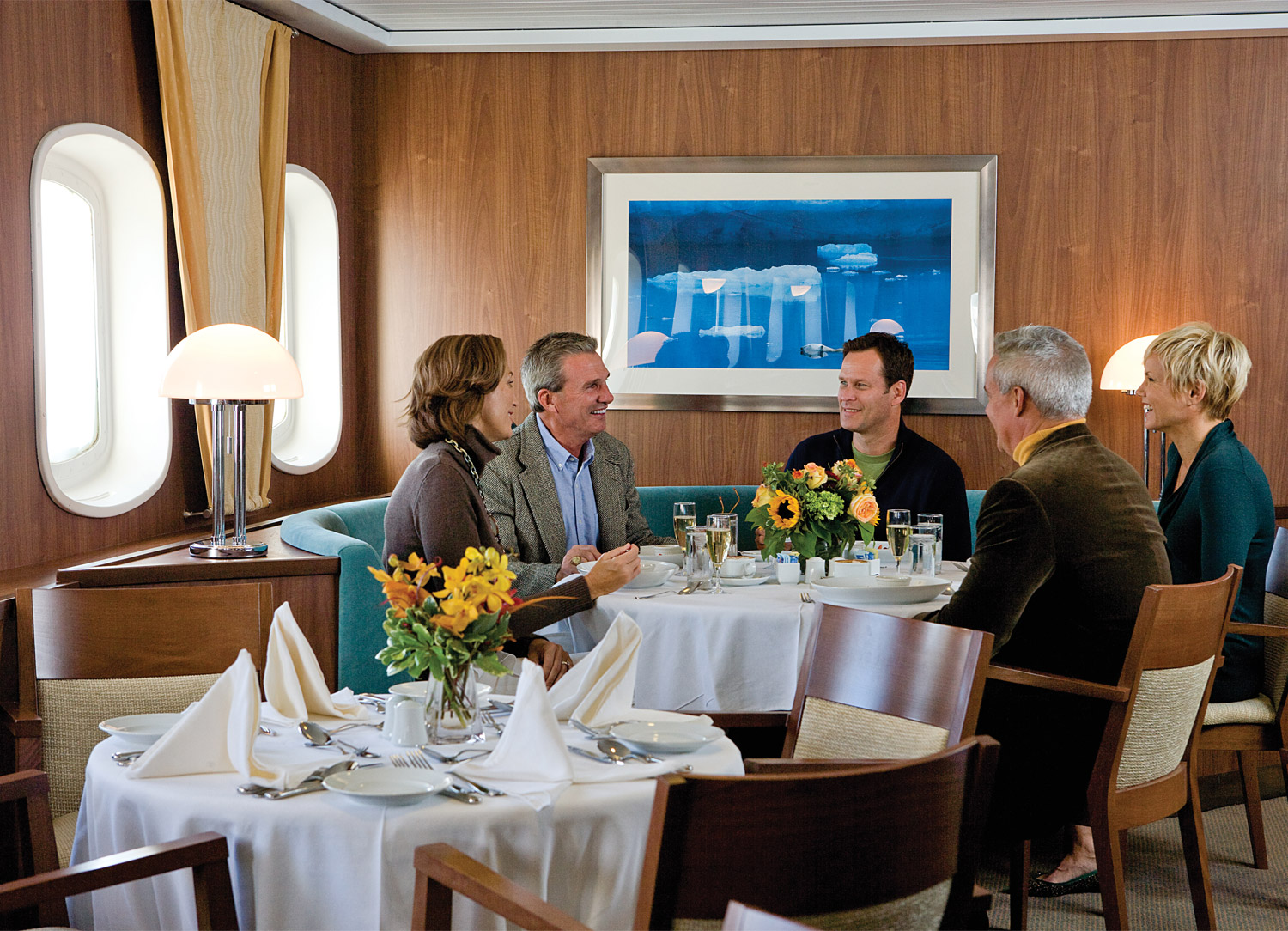 All accommodations have a large window or private balcony and are accentuated by soothing earth colors and luxurious amenities. The ship’s cuisine, inspired by the region and freshly sourced whenever possible, is certain to make your taste buds tingle with delight (as is the traditional fare that is also available). Don’t be surprised to find the ship’s officers, naturalists and guest speakers to join in on dining with you.