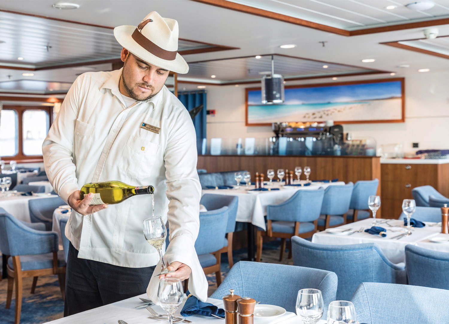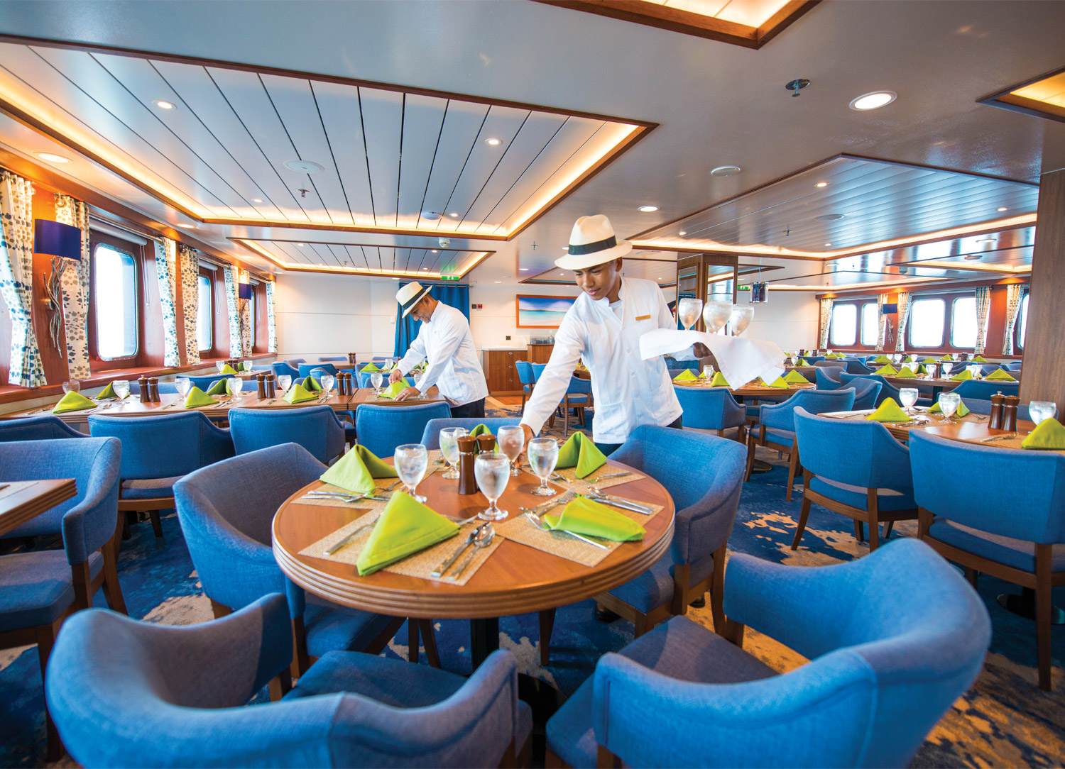The fresh, sustainable and locally-sourced cuisine found aboard National Geographic Gemini is full of flavor and destined to melt in your mouth. Breakfast and lunch are usually served as buffets while dinner features sit-down service. Light lunches and barbecues are occasionally held on deck. Open seating dining is offered onboard National Geographic Gemini so you can choose where and with whom you want to dine. Don’t be surprised to find the ship’s officers, naturalists and guest speakers to join in on dining with you.
