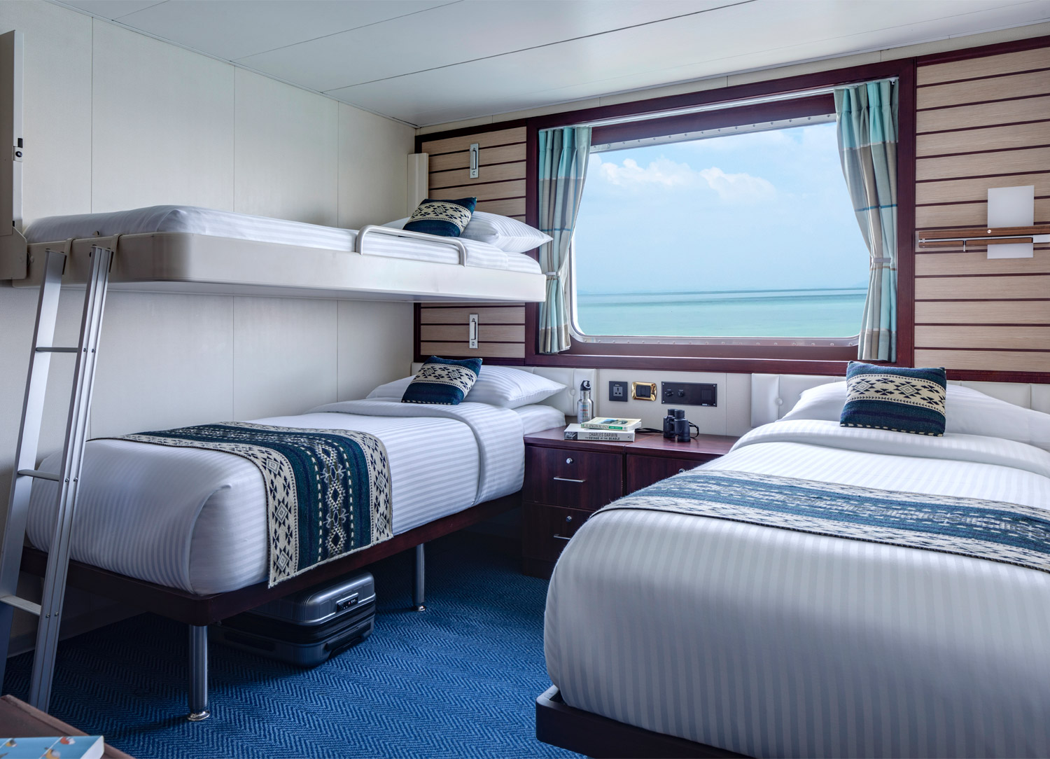 Launched in 2001, the expedition ship National Geographic Gemini is designed for maneuvering remote areas and getting close with the rare and exquisite wildlife of the Galapagos, on land and in the sea. She sails year-round with a cozy guest capacity of 48, and offering some of the largest suites in the Galapagos fleet. National Geographic Gemini carries a fleet of zodiacs, kayaks and stand-up paddleboards for those who want the ultimate exploring experience! These are just a handful of the exclusive experiences you can have when sailing onboard a National Geographic Gemini cruise.