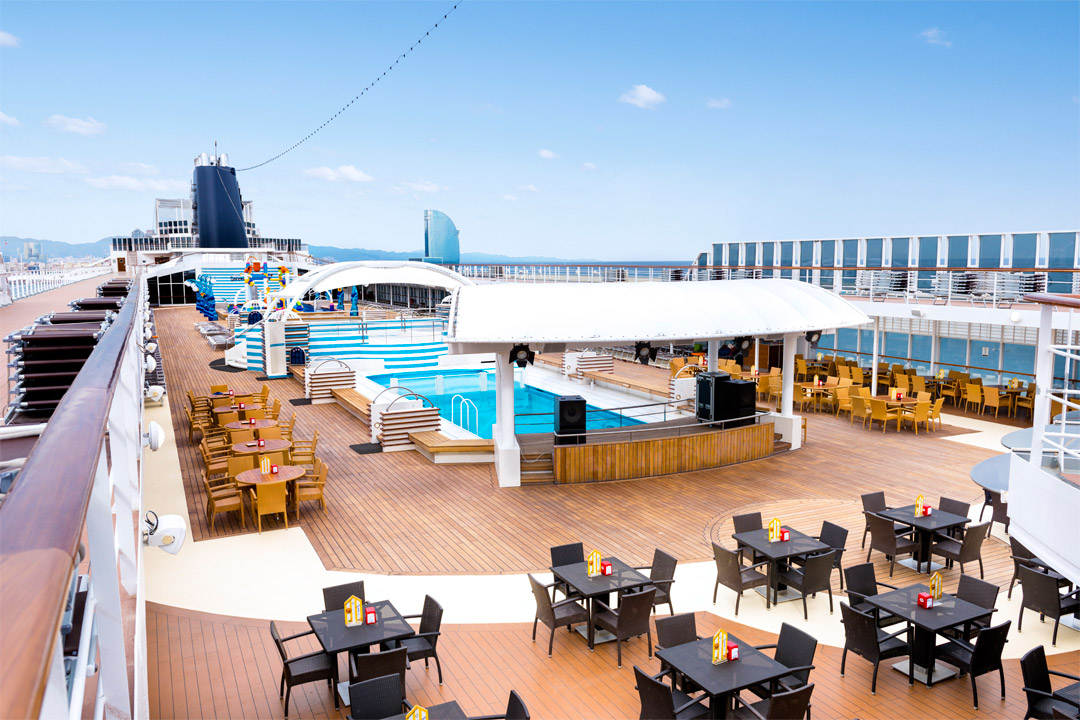 MSC Sinfonia features a classy and chic Italian-influenced interior design plus modern amenities to provide you with an outstanding onboard experience. Refurbished in 2015 as part of MSC Cruises’ Renaissance Program, she received about 200 brand-new staterooms, 75% of which feature private, spacious balconies, in addition to an enlarged main dining and buffet area, improved children’s areas (including a new spray park), and an upgraded spa area. This superior ship accommodates a little under 3,000 guests, with a fabulous crew to passenger ratio of 1:2.2, ensuring that your needs will never go unmet by MSC Sinfonia’s outstanding staff.