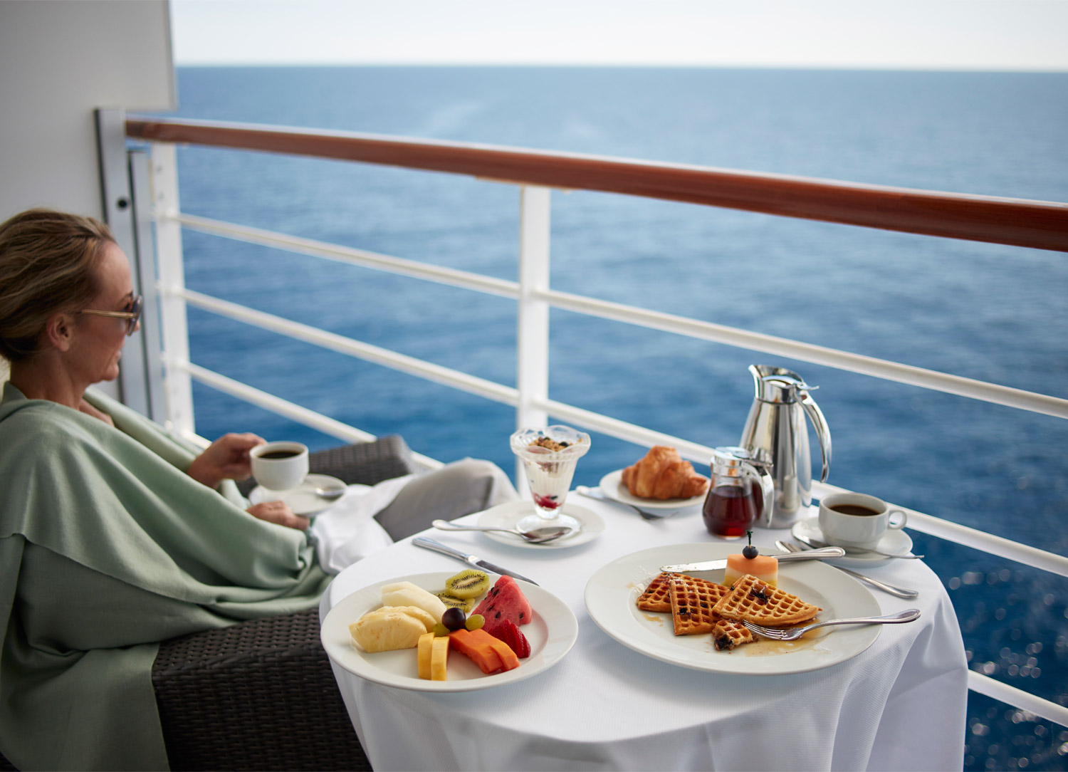 An extensive room service menu is available for those that would like to dine in the comfort and privacy of their suite or stateroom.