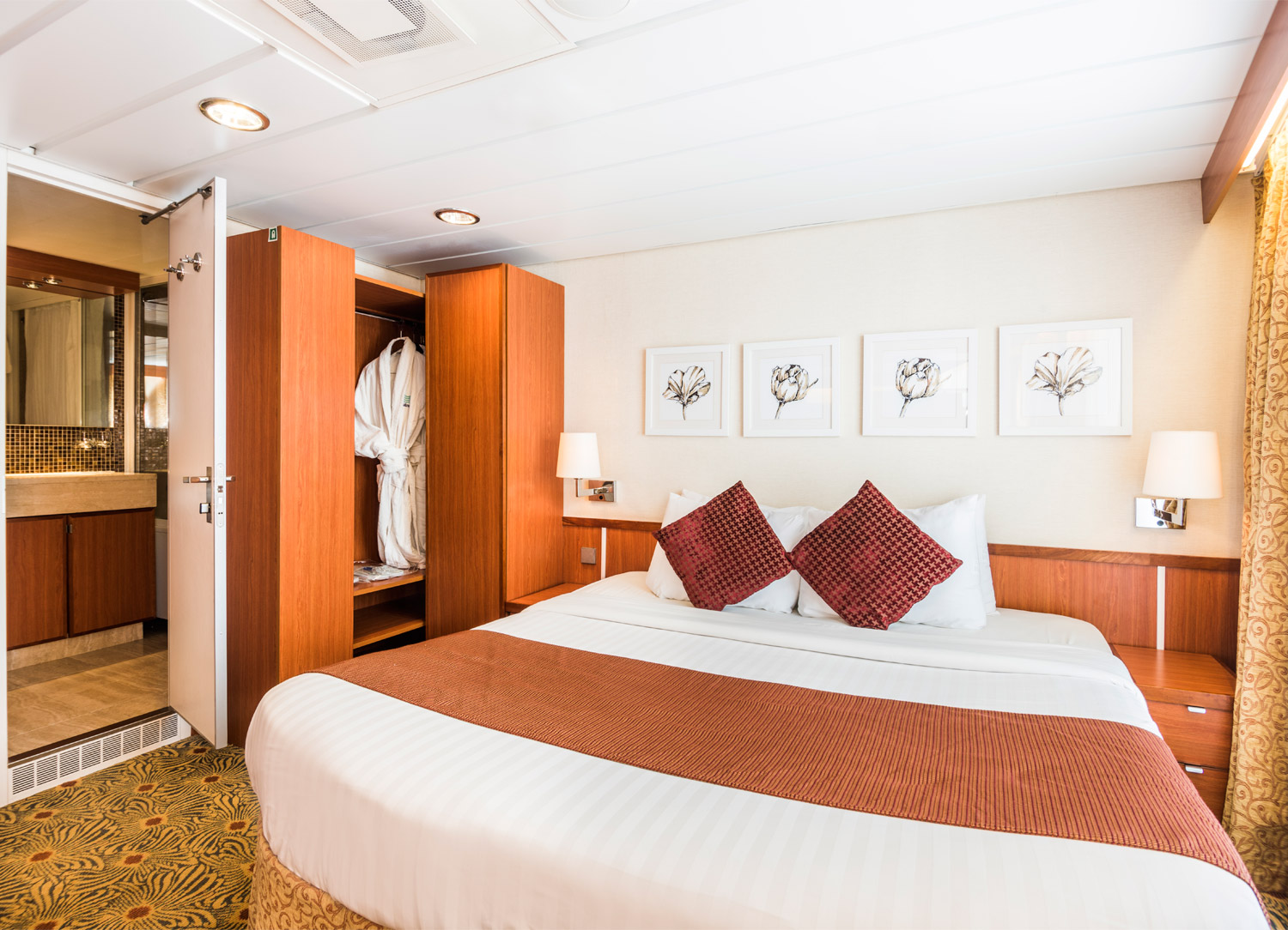 Standard Inside cabins are located on Decks 4 to 11 and can accommodate 1 to 4 guests. Each one includes a convertible double bed, bathroom, dressing table, TV, safety deposit box and hair dryer and provides quick access to Zenith’s restaurants and entertainment facilities. Slightly larger outside cabins are located on Decks 4 to 9 and can also hold 1 to 4 guests. Certain outside cabins have balconies and depending on the type, you will have quick access to the onboard restaurants,