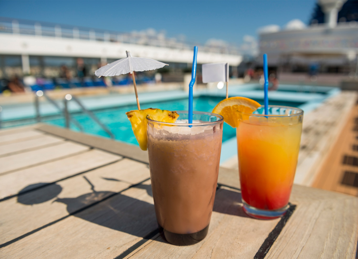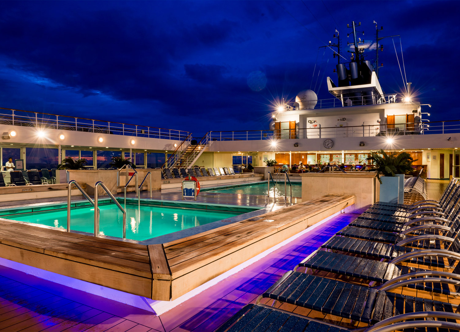entertainment venues, bars, pools and exterior decks.