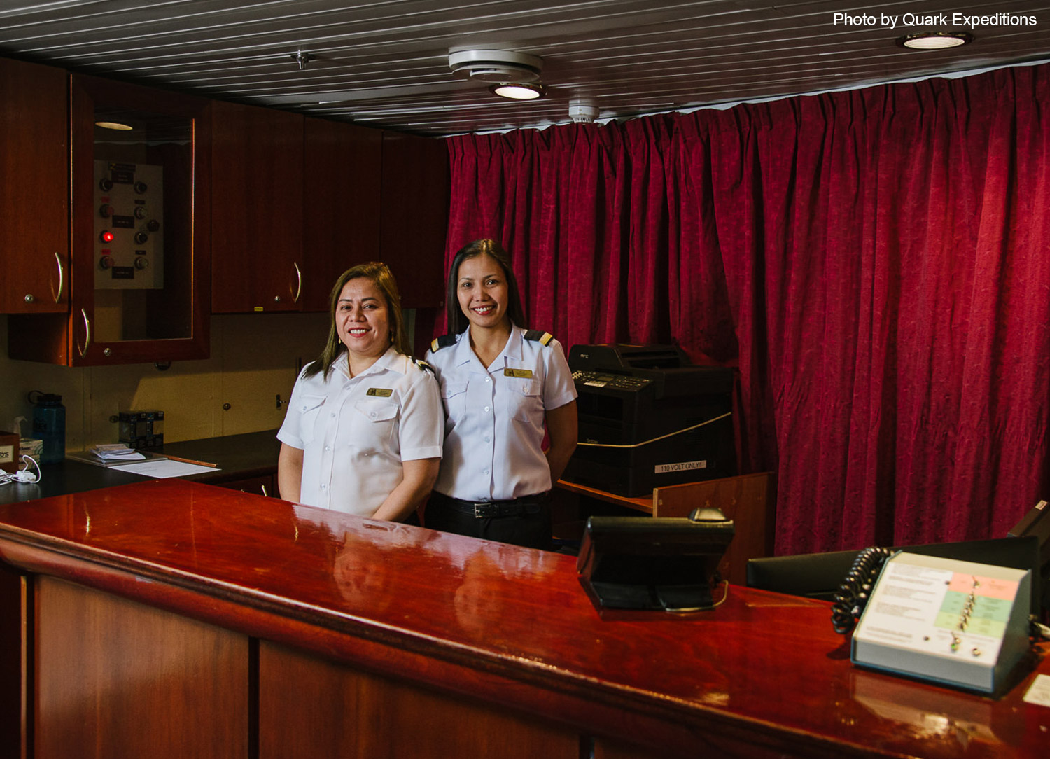 All cruisers onboard Ocean Adventurer are sure to receive dedicated attention from the staff of Quark Expeditions. There are 87 staff and crew members compared to 128 guests, meaning all passengers are ensured personalized care! This includes an Expedition Team of experts in all different backgrounds (including marine biology, history, geology, glaciology) to lead informative presentations and guide you on excursions.