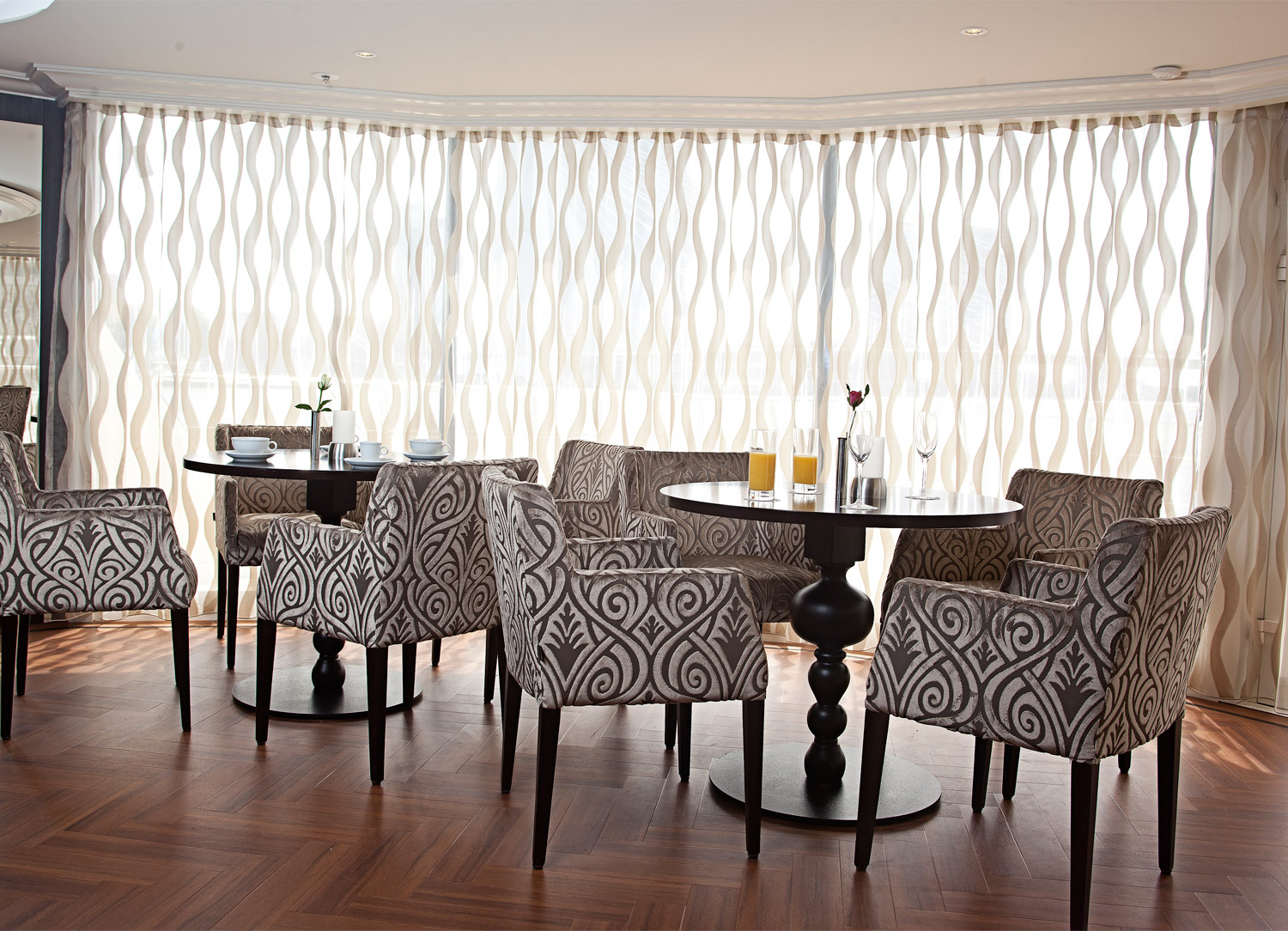 Dining onboard MS William Shakespeare is second to none. During the day, a full breakfast and lunch buffet keeps you satisfied until it’s time for the sumptuous four-course dinner each night. Early risers can enjoy breakfast in the lounge. Guests can also opt to enjoy breakfast room service. The ship has several 24-hour coffee and tea stations where you can refuel yourself with your favorite caffeine boost throughout the day. All dining onboard MS William Shakespeare is open, so you can always choose when to come and where to sit.