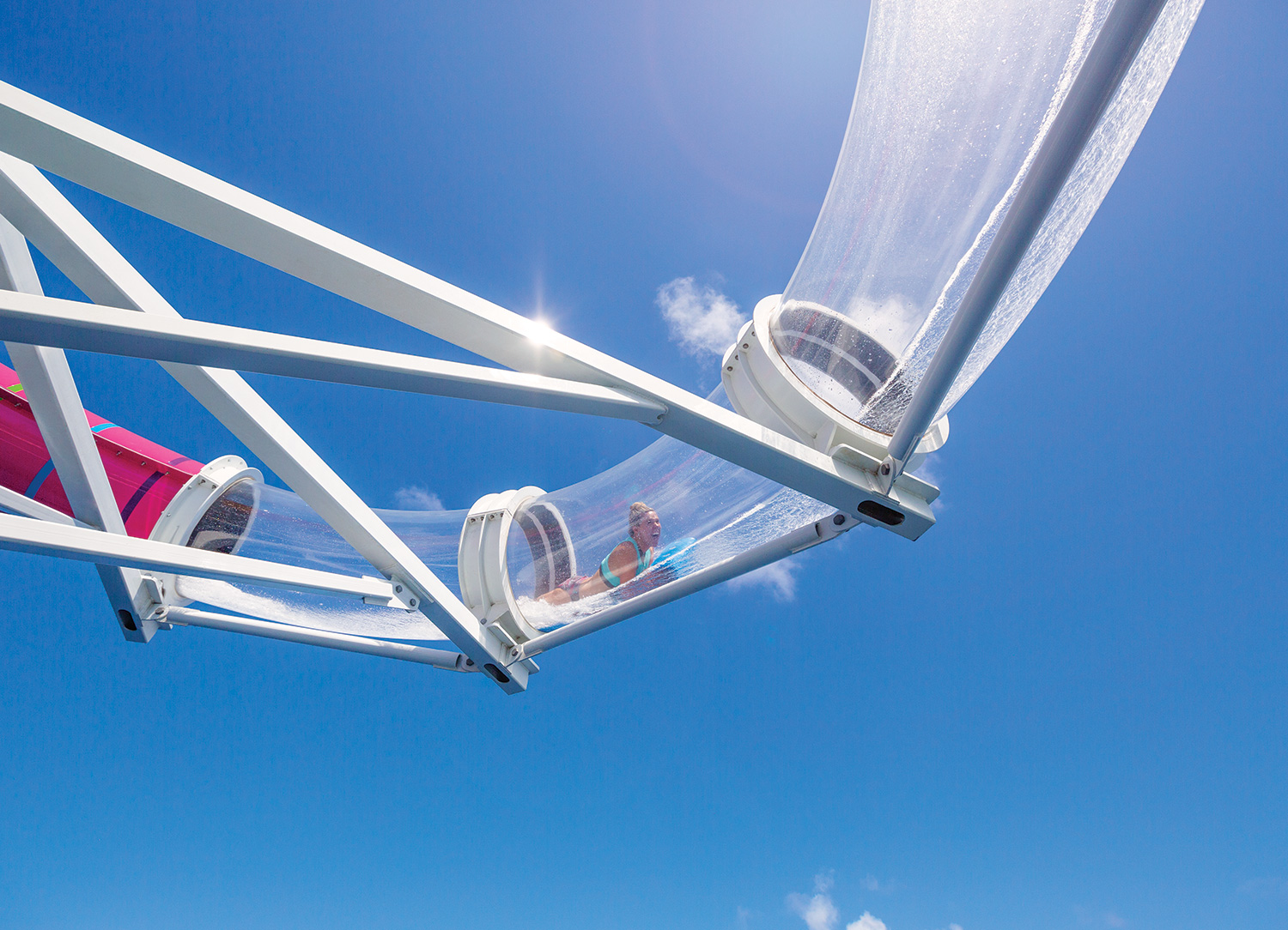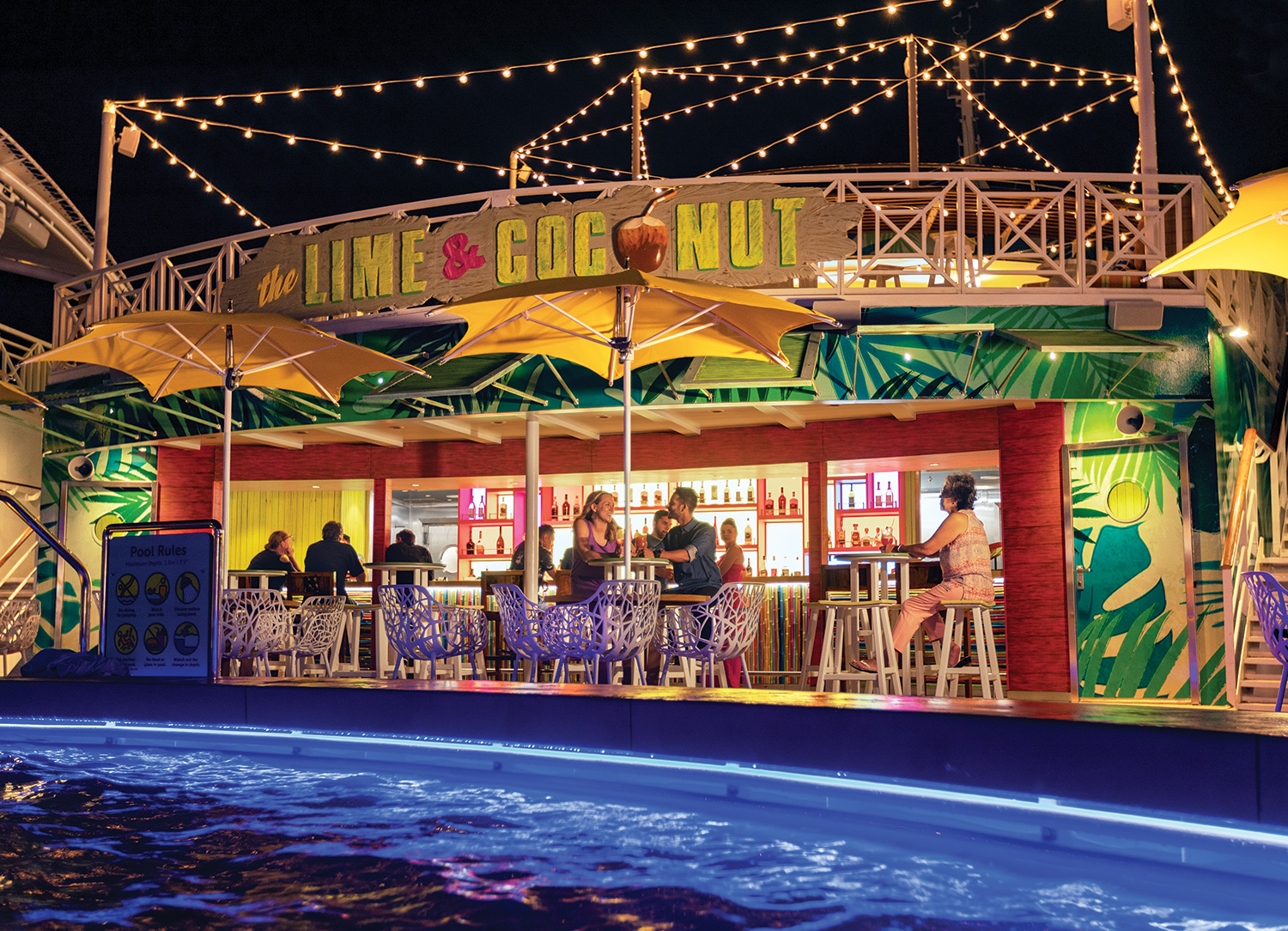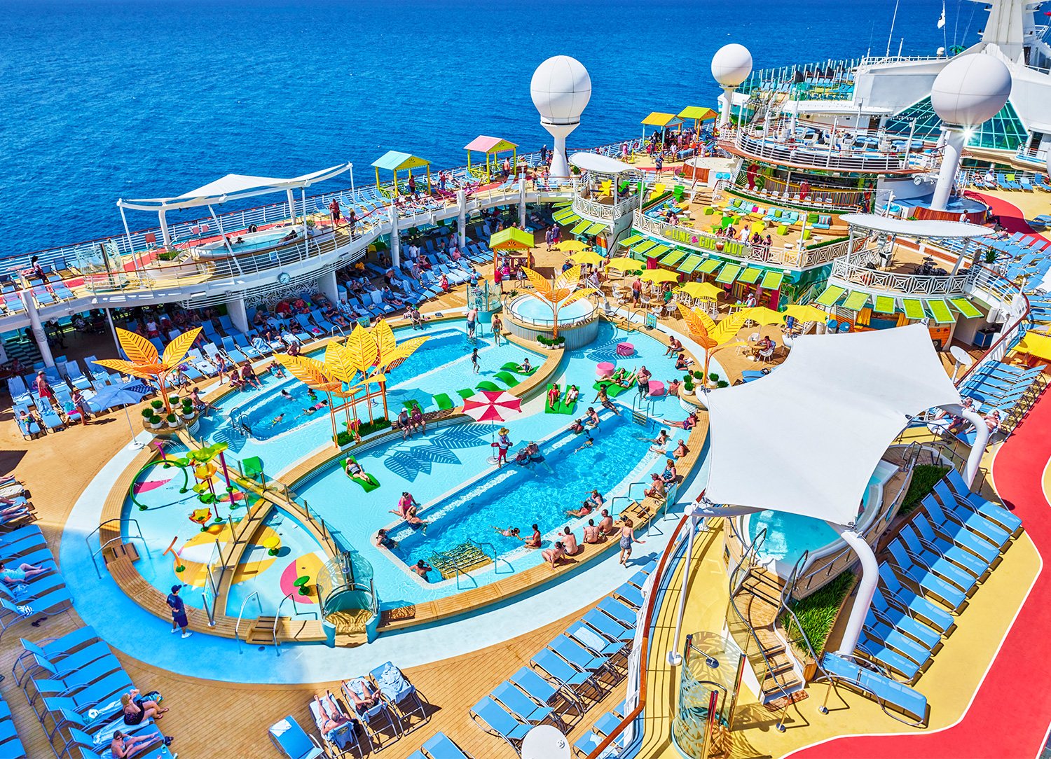 Navigator of the Seas underwent a Royal Amplification in 2019 to provide you with an even more daring and adventurous journey! This refurbishment saw the addition of two brand new waterslides, The Blaster and Riptide. Its entire pool deck was transformed into a Caribbean-style oasis. Other additions included a two-level pool deck bar, a blow dry bar, specialty restaurants Playmaker's Sports Bar & Arcade, Hooked Seafood, Jamie's Italian, plus a Starbucks.