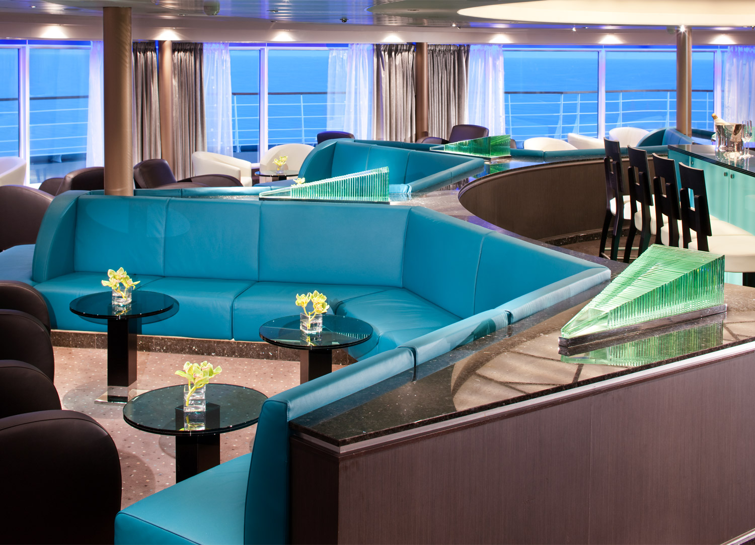 While sailing on a Seabourn Sojourn cruise, you are able to relax and have fun in a great variety of public spaces. Among the ship's six bars and lounges are: