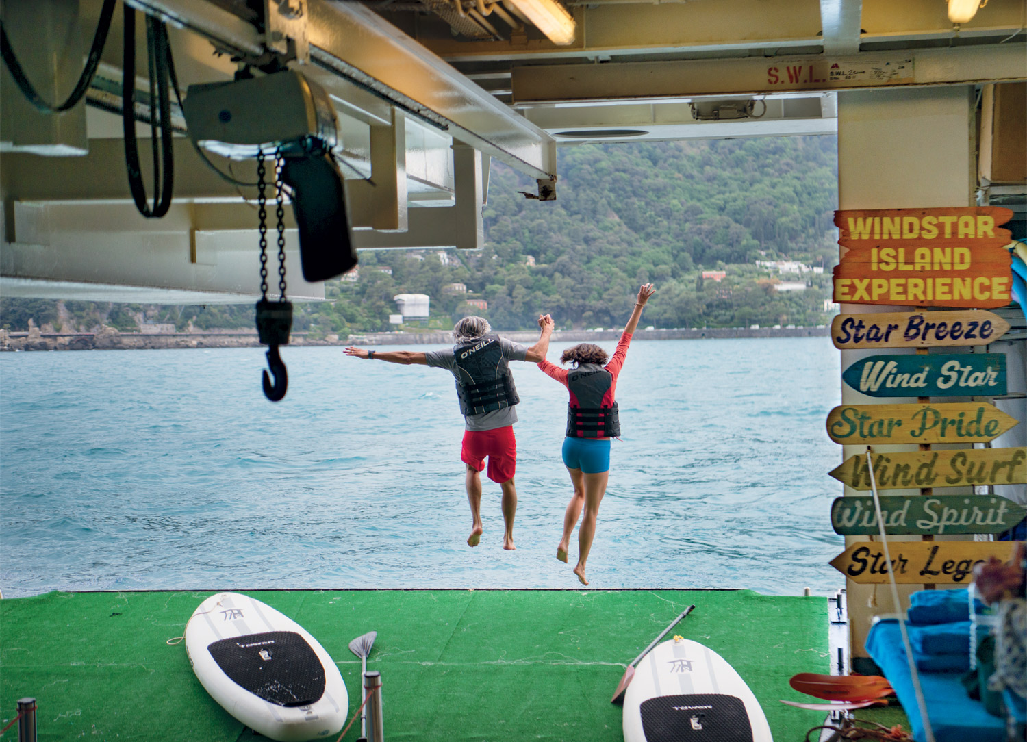 While sailing on a Wind Star cruise, guests are able to choose from a great variety of entertainment areas such as the casino, library, swimming pool, spa, fitness center, as well as lounge chairs on the Fly Bridge. Among the ship's bars and lounges are the Piano/Pool Bar where live music and cocktails are available, as well as the Skylight Main Lounge, that includes a bar and dance floor.