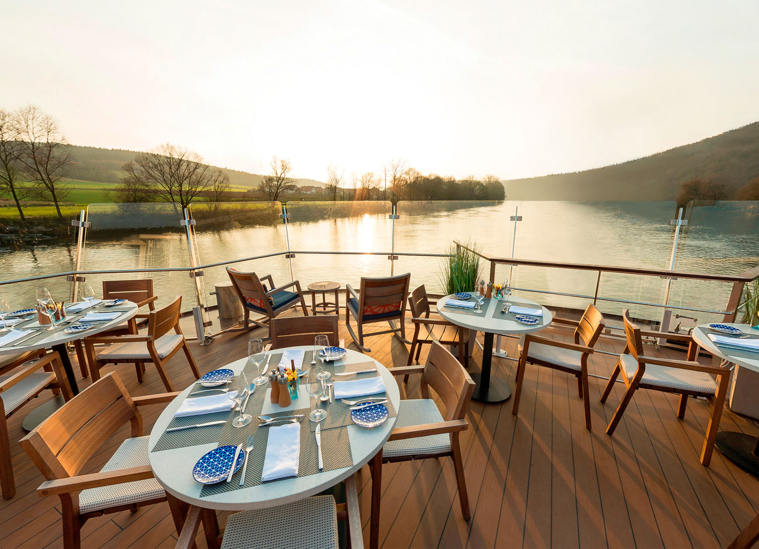 The Aquavit Terrace is one of the most popular outdoor places on Viking Rinda. Here, you can grab a casual lunch or dinner buffet of items made on a small gas grill. You can also relax and enjoy the passing scenery as you sink into comfortable wicker furniture, socializing with other passionate travelers or enjoying your favorite cocktail. It is a wonderful place to enjoy the sunset over a glass of wine with dinner or indulge in some peaceful morning meditation as the mist rolls over the mighty river.