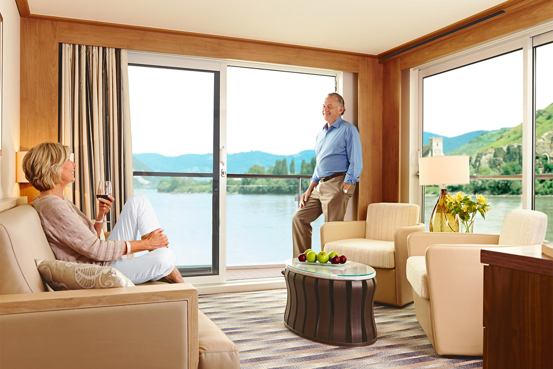 Spend your time on Viking Sigyn in ultimate luxury when you book one of the two Explorer Suites. These suites measure 445 square feet and are some of the largest suites found on a river cruise ship. In addition to a French Balcony, you get to enjoy the convenience of a large wrap-around balcony, two flat-screen TVs with on-demand infotainment, a daily replenished minibar, complimentary laundry service, and so much more!