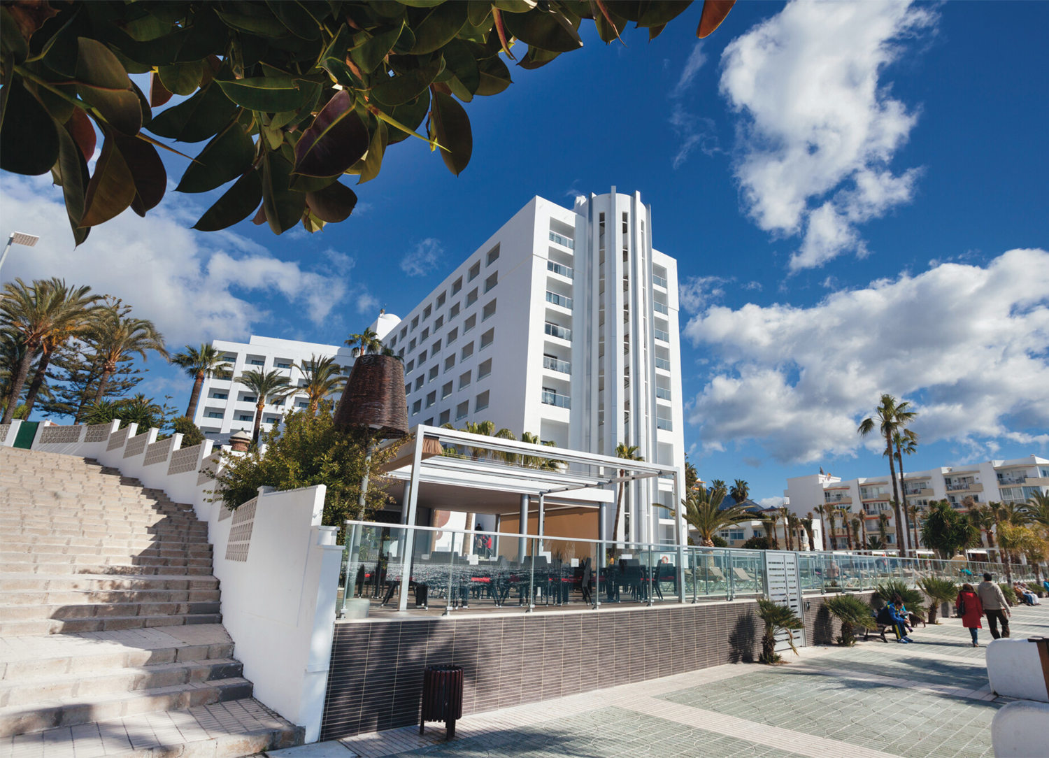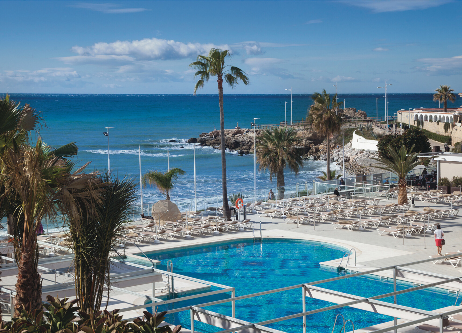Hotel Riu Monica is a magnificent adults-only resort in Nerja separated from Playa de la Torrecilla beach only by the beachfront promenade. The four-star hotel is also right by downtown Nerja, where visitors can frequent charming restaurants and shops. Of course, you may love Hotel Riu Monica too much to leave! There's a spacious outdoor pool with an accompanying poolside bar, as well as a heated indoor pool open in the winter. Guests can also break a sweat at the gym or treat themselves to a massage or other beauty treatments at the tranquil spa. With live entertainment and an array of delicious dining options, Hotel Riu Monica is the perfect getaway for couples or friends!